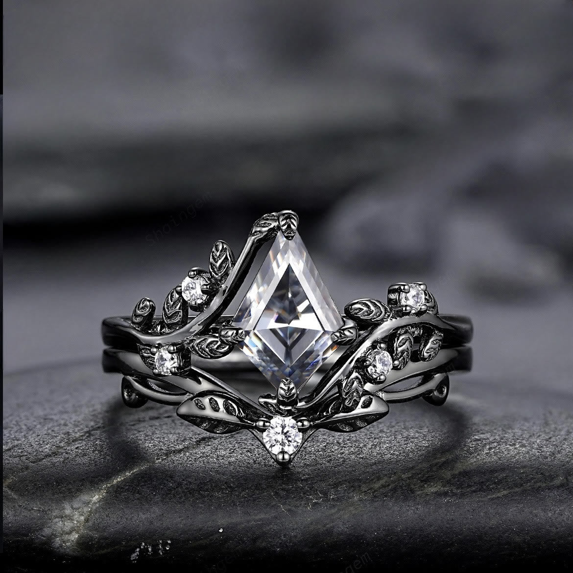 - Introducing the 2 Pcs Black Oval Gray Moissanite Engagement Ring Set, where sophistication meets contemporary style. This stunning two-piece set features a striking black oval-shaped Moissanite center stone paired with delicate gray Moissanite accents, creating a dramatic yet elegant look perfect for modern couples who appreciate both beauty and durability.