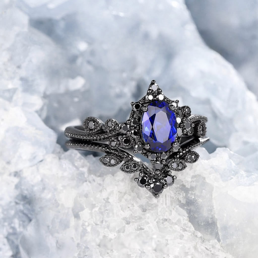 - ❤️Celebrate your love with the unique beauty of the 2 Pcs Black Oval Gray Moissanite Engagement Ring Set, a timeless and sustainable symbol of commitment that reflects both sophistication and individuality.
