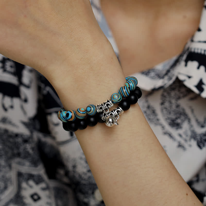 Olivenorma 8mm Blue Malachite Black Onyx Beaded Bracelet