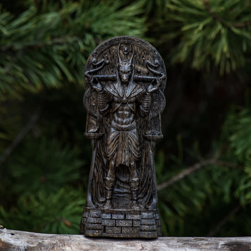 Olivenorma Wooden Carved Egyptian God Anubis Statue Pagan Decoration