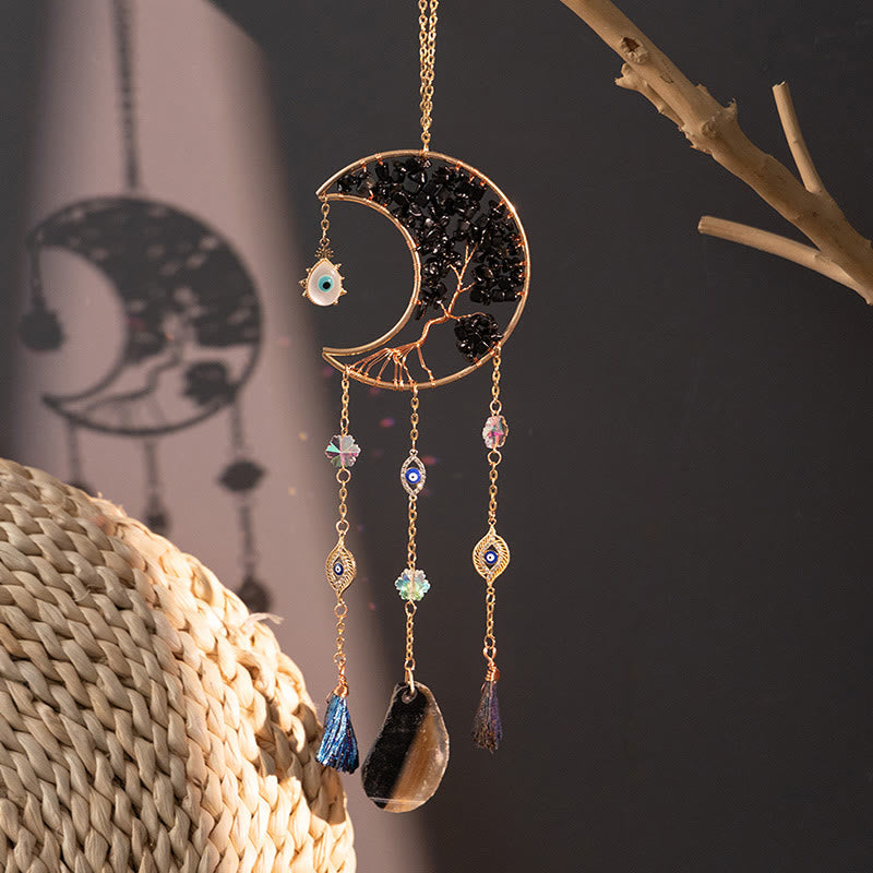 Olivenorma Black Moon Evil Eye Protection Crystal Wind Chimes