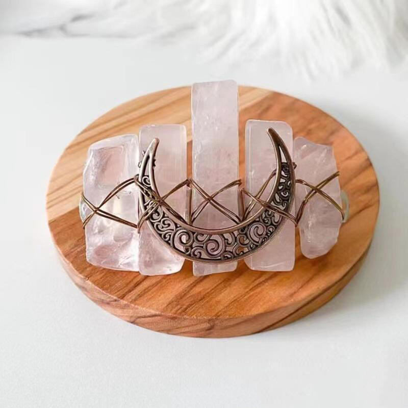 Olivenorma Handmade Rose Quartz Cresent Hair Clip Hairpin
