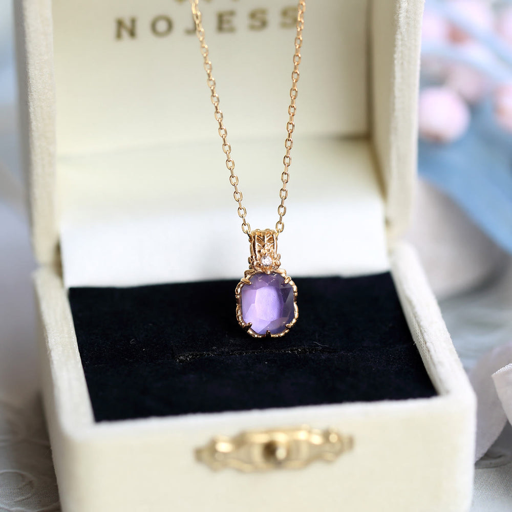 Olivenorma Natural Amethyst Square Stone Ring Necklace