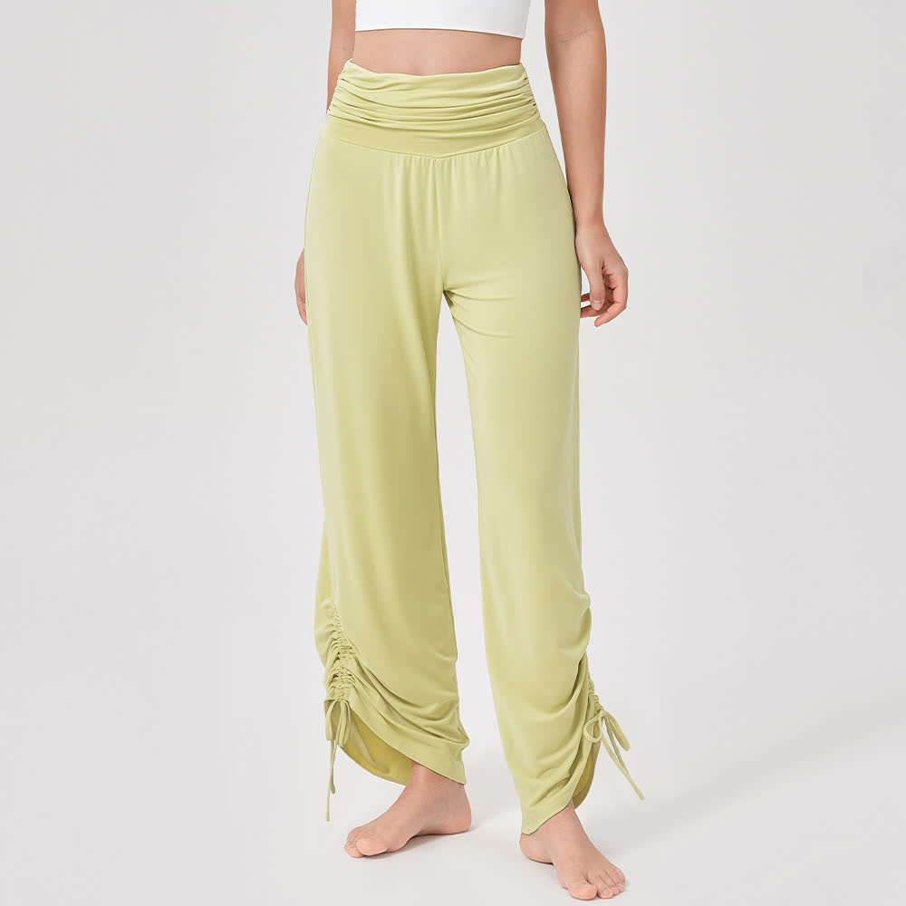 These viscose high-waist loose-fit shirred yoga pants combine elegance with comfort. The high-rise waistband provides gentle support, while the shirred detailing adds a touch of texture and style. Made from soft, breathable viscose, they offer a lightweight, flowy feel perfect for yoga, lounging, or casual outings.