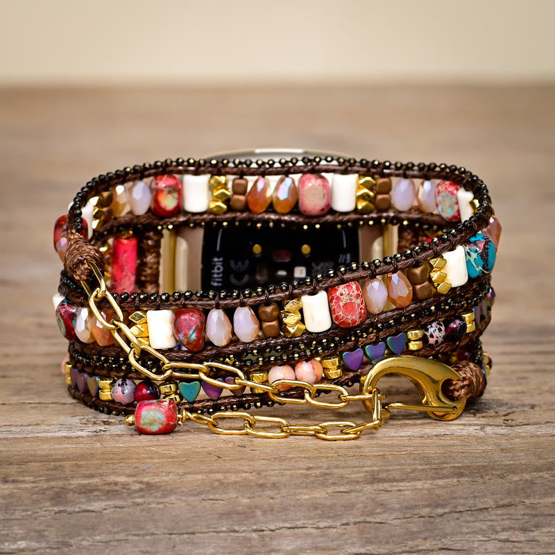 Olivenorma 3Layer Red Stone Beaded Handwoven Fitbit Watch Strap