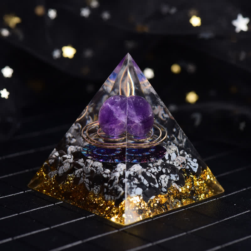 Olivenorma Amethyst & Snowflake Obsidian Ball Orgone Pyramid