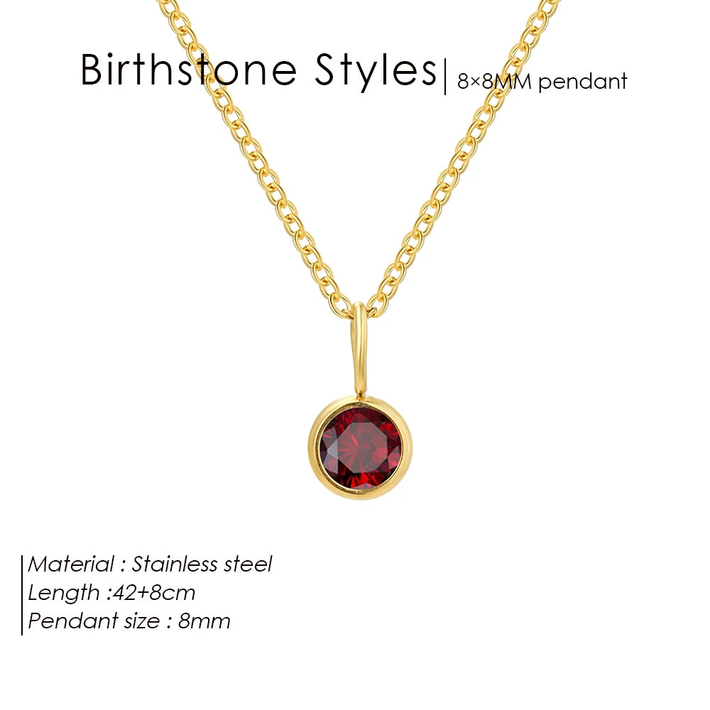 Olivenorma 8mm Birthstone Titanium Steel Zircon Necklace