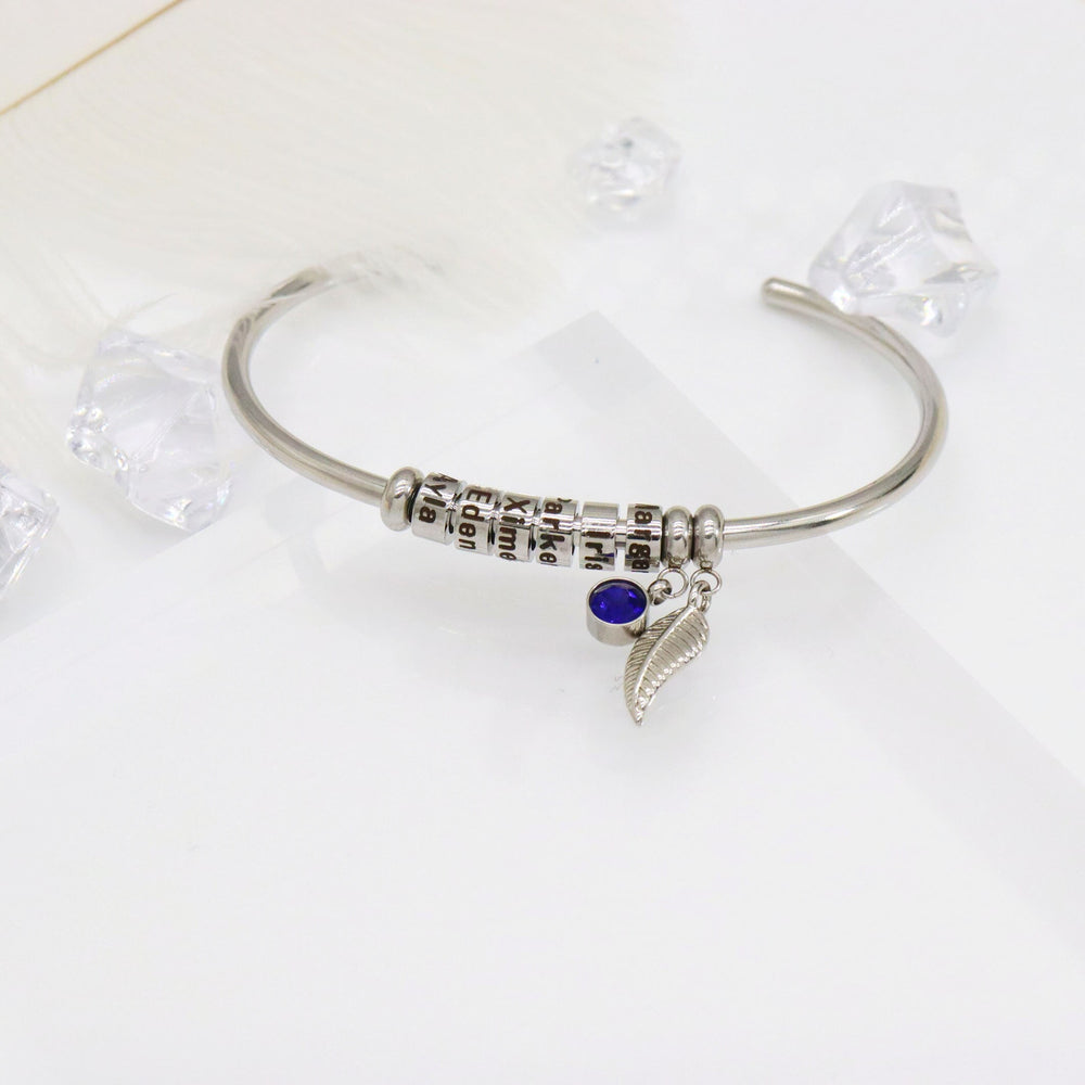 Olivenorma Birthstone With Leaf Personalized Name Bracelet