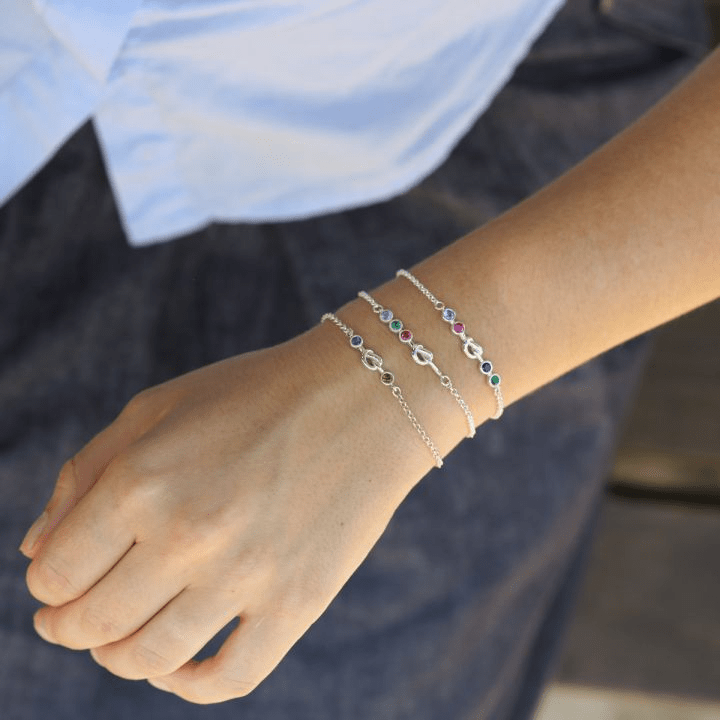 Olivenorma Personalized Heart 2-5 Birthstones Bracelet