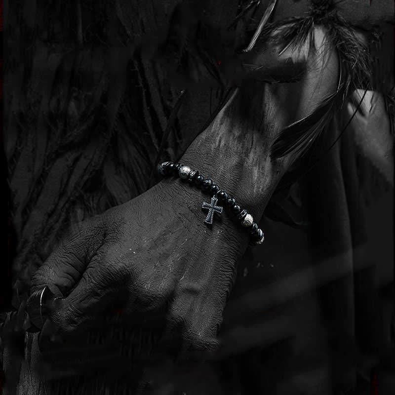 Olivenorma Natural Black Onyx Beads Cross Pendant Bracelet