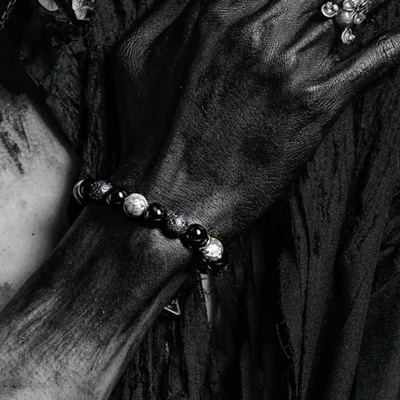 Olivenorma "Peace Mood" Black Onyx & Map Stone Vintage Bracelet