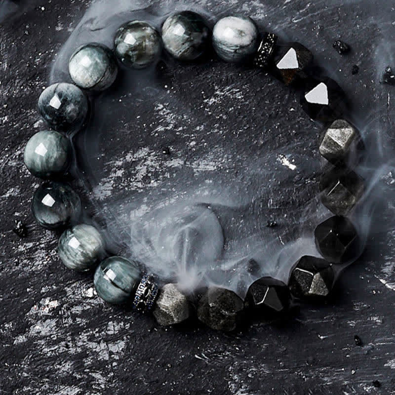 Olivenorma Hawk's Eye Quartz Silver Obsidian Beaded Bracelet