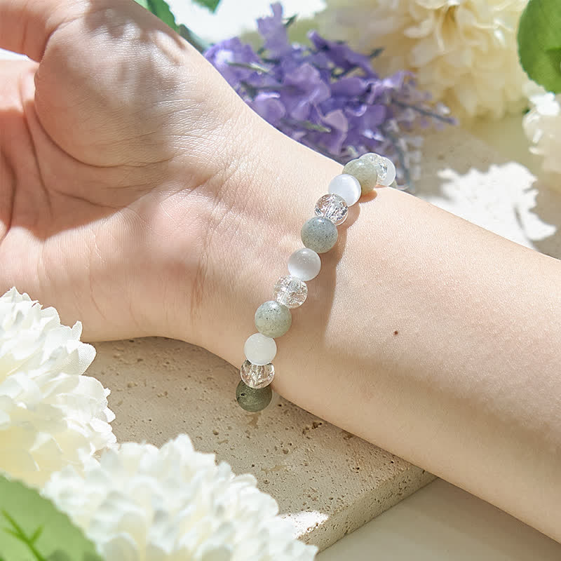Olivenorma Natural Clear Crystal Pink Opal Labradorite Beads Bracelet