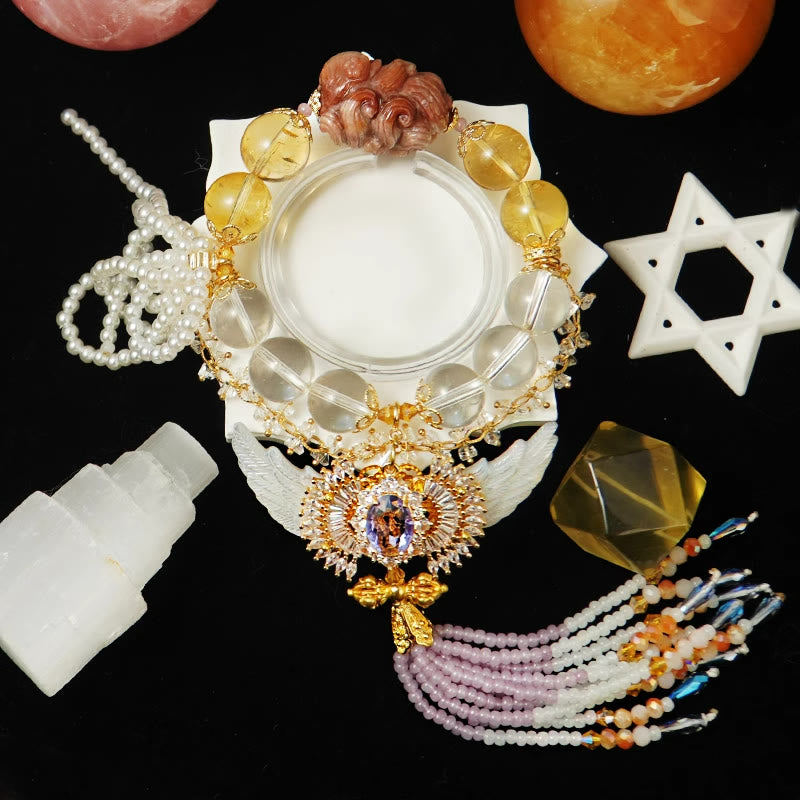 Olivenorma "Angel Wings" Clear Crystal Citrine Tassel Bracelet