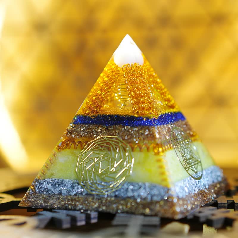 Olivenorma "Key to Wealth" Clear Crystal Citrine Orgone Pyramid