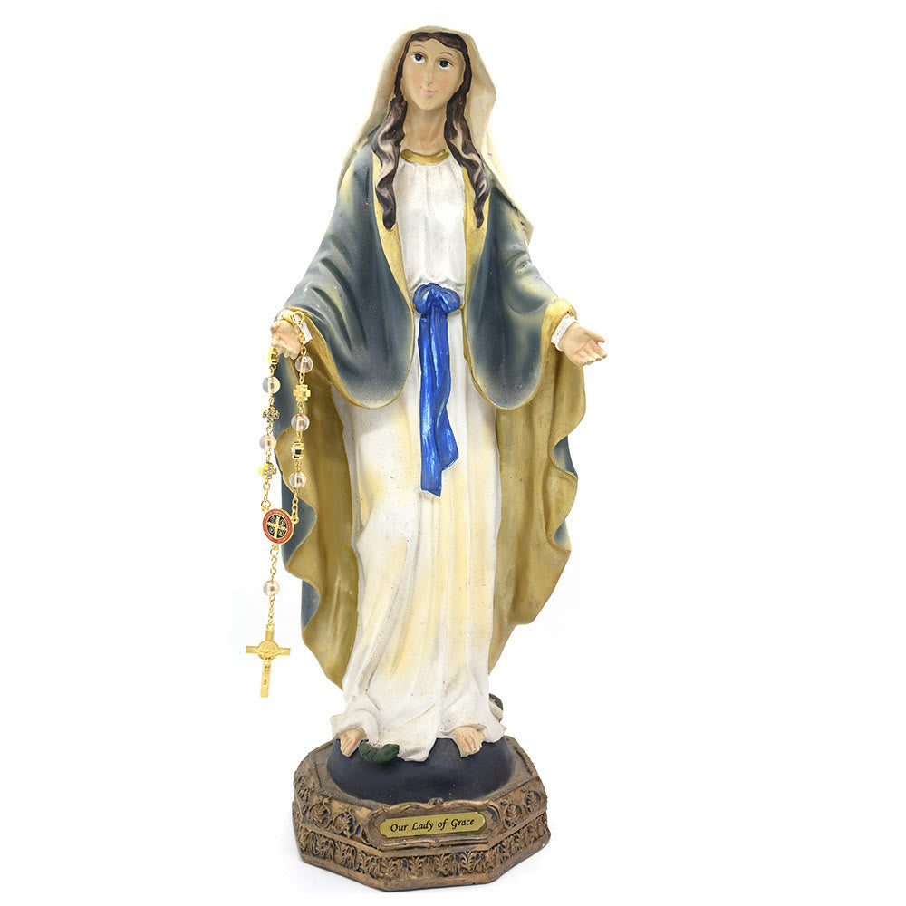 Olivenorma Black Network Agate Holy Mother Cross Rosary Necklace