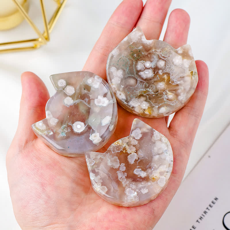 Olivenorma Cherry Blossom Agate Cat Head Crystal Bowl