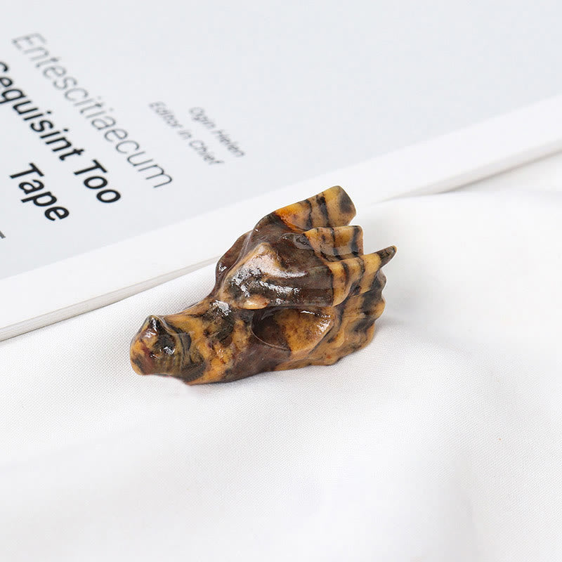 Elevate your space with the Olivenorma Crystal Dragon Skull Statue. Crafted with care, this 1.5-inch gemstone decoration harnesses the unique vibrational frequency of crystals, offering aesthetic appeal along with their purifying, balancing, and realigning properties.