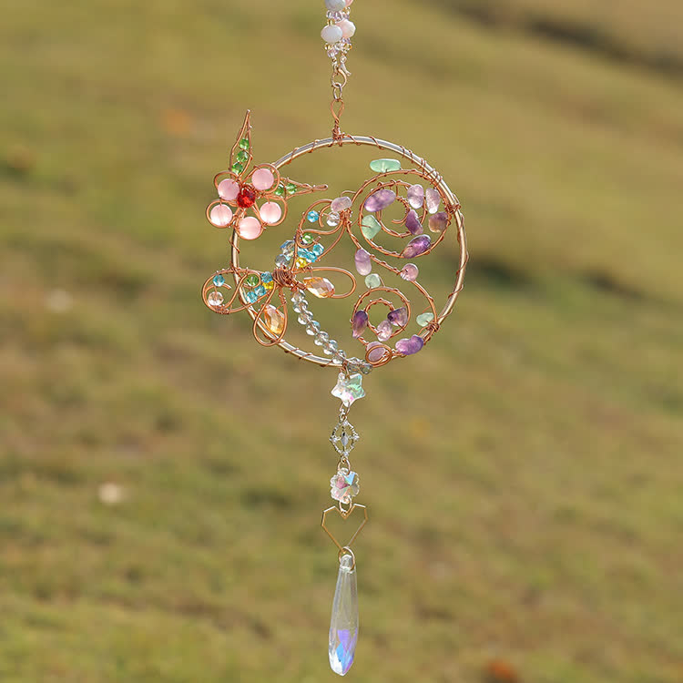 Olivenorma Natural Crystal Dragonfly Pendant Wind Chime