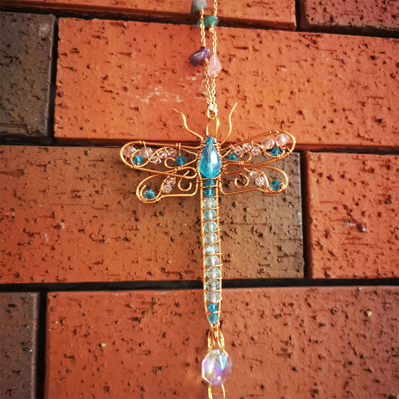 Olivenorma Natural Crystal Copper Wire Dragonfly Wind Chime