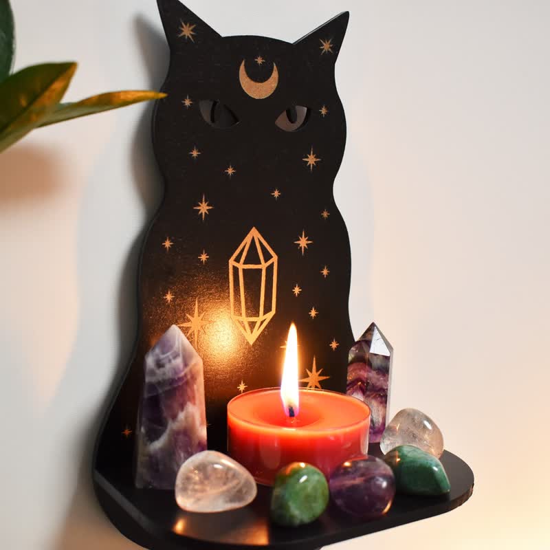 Olivenorma Celestial Cat Altar Crystal Shelf
