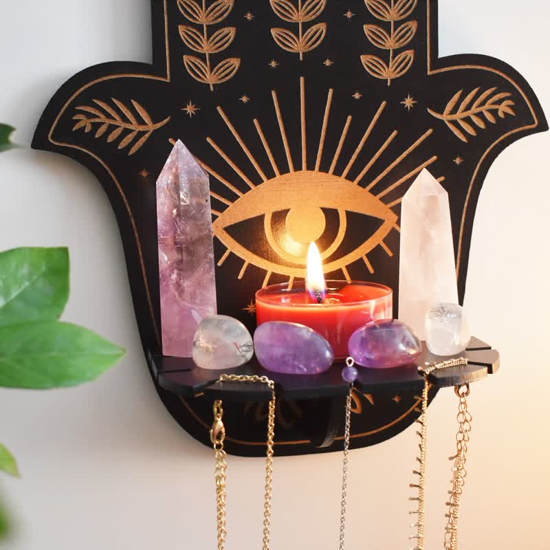 Olivenorma Hamsa Hand Floral Sun and Moon Altar Crystal Shelf