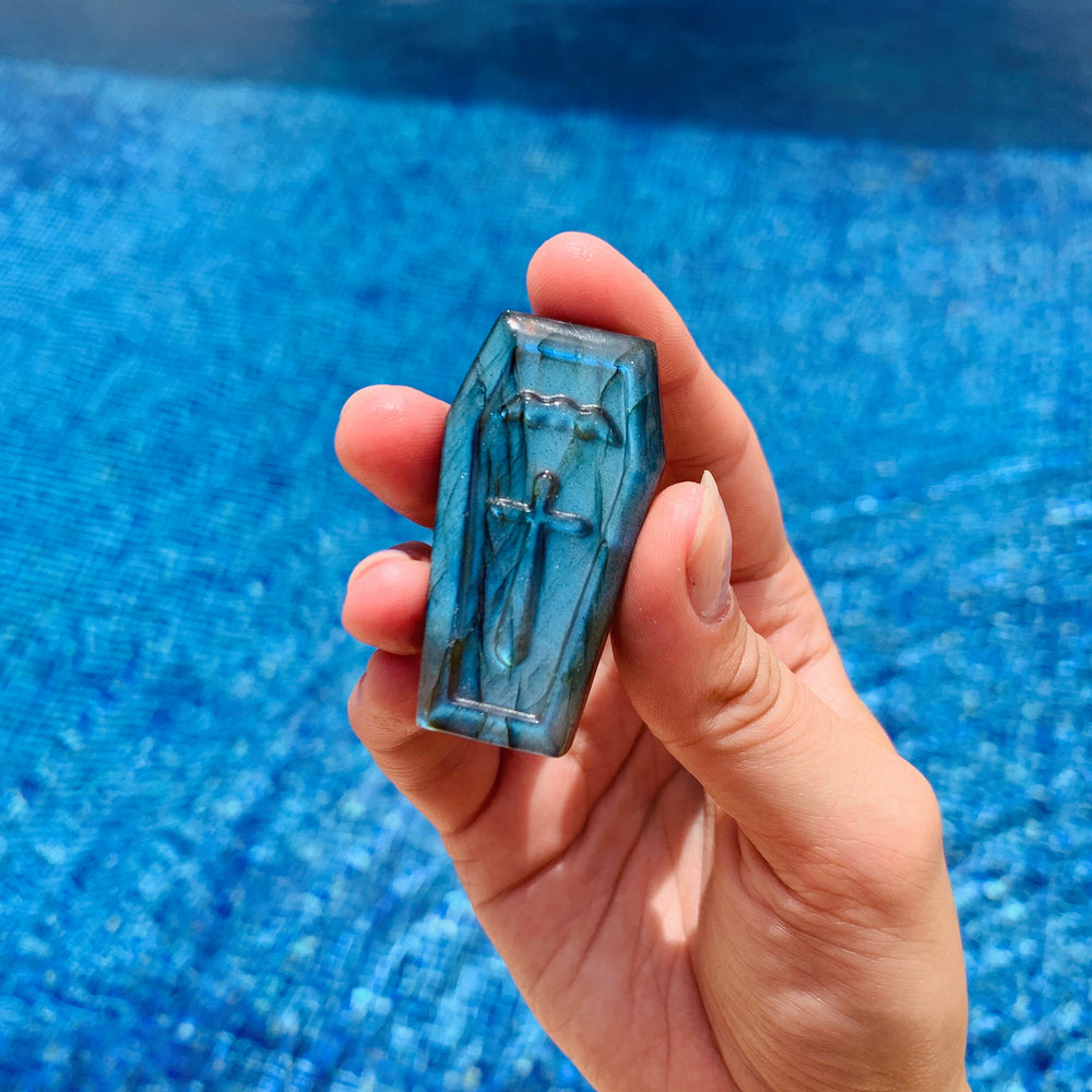Olivenorma Labradorite Crystal Coffin Healing Halloween Gemstone Decoration