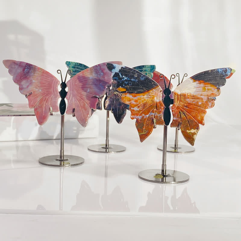 Olivenorma Natural Ocean Jasper Butterfly Carving Gemstone Decoration