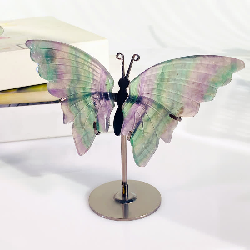 Olivenorma Natural Fluorite Butterfly Carving Gemstone Decoration