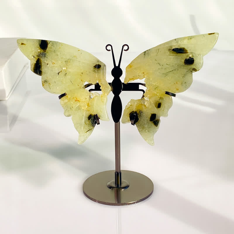 Olivenorma Natural Prehnite Butterfly Carving Gemstone Decoration