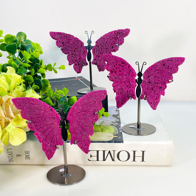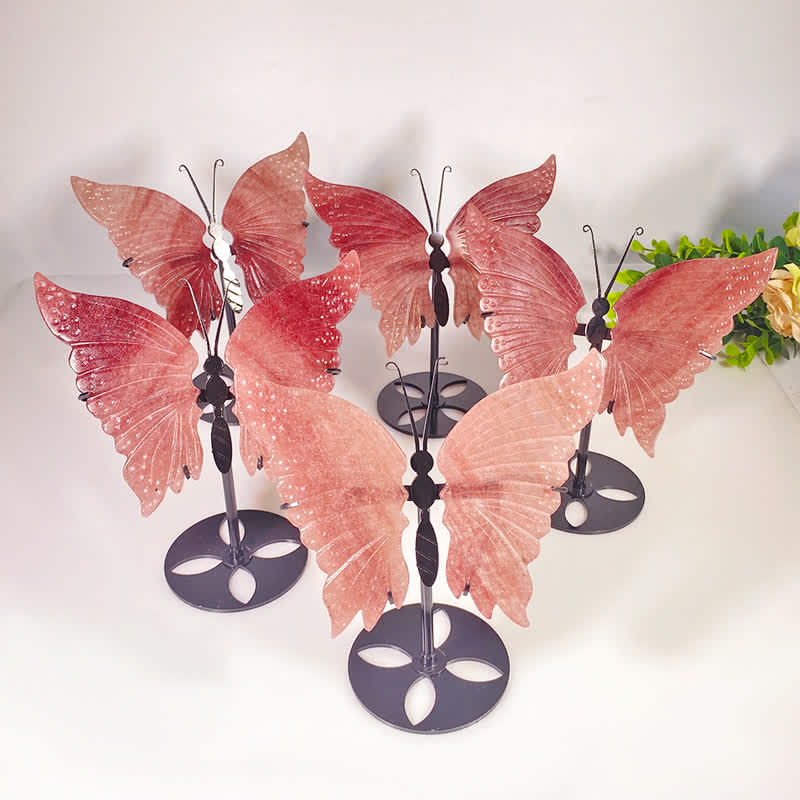 Olivenorma Natural Strawberry Quartz butterfly Carving Gemstone Decoration