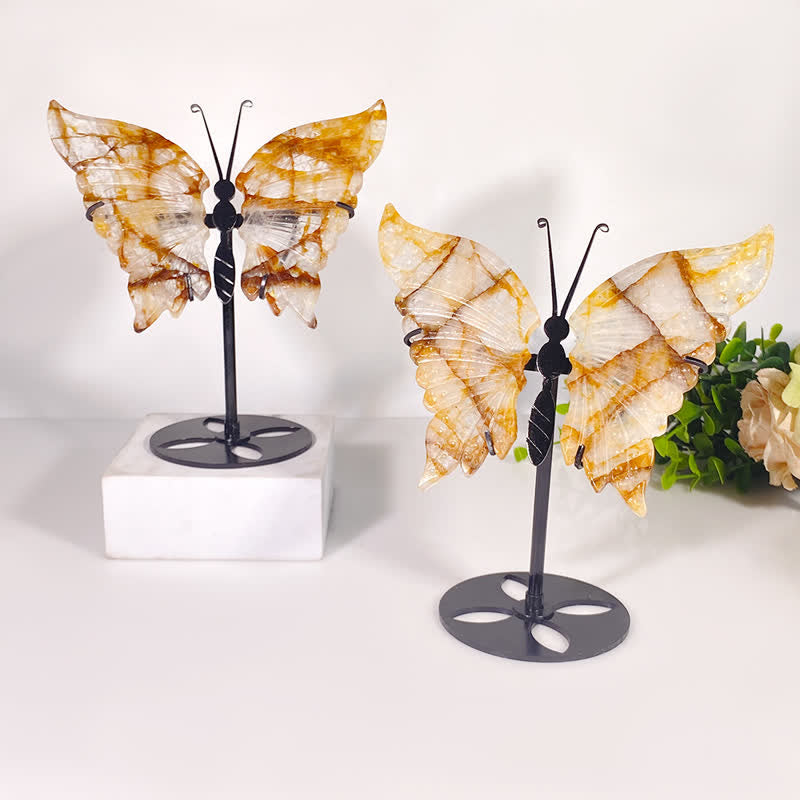 Olivenorma Natural Yellow Calcite Butterfly Carving Gemstone Decoration