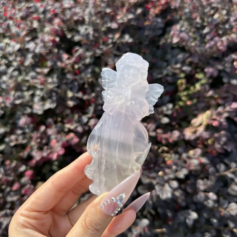 Olivenorma White Gypsum Baby Angel Carving Gemstone Decoration