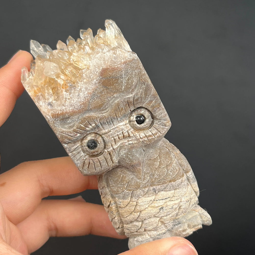 Olivenorma Clear Crystal Cluster Owl Ornament Gemstone Decoration