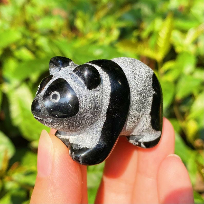 Olivenorma Natural Obsidian Carved Panda Gemstone Decoration