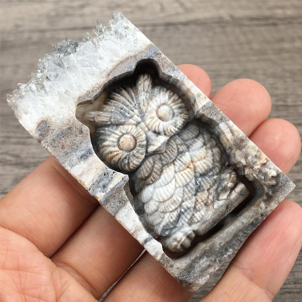 Olivenorma Natural Crystal Owl Ornament Carving Crafts