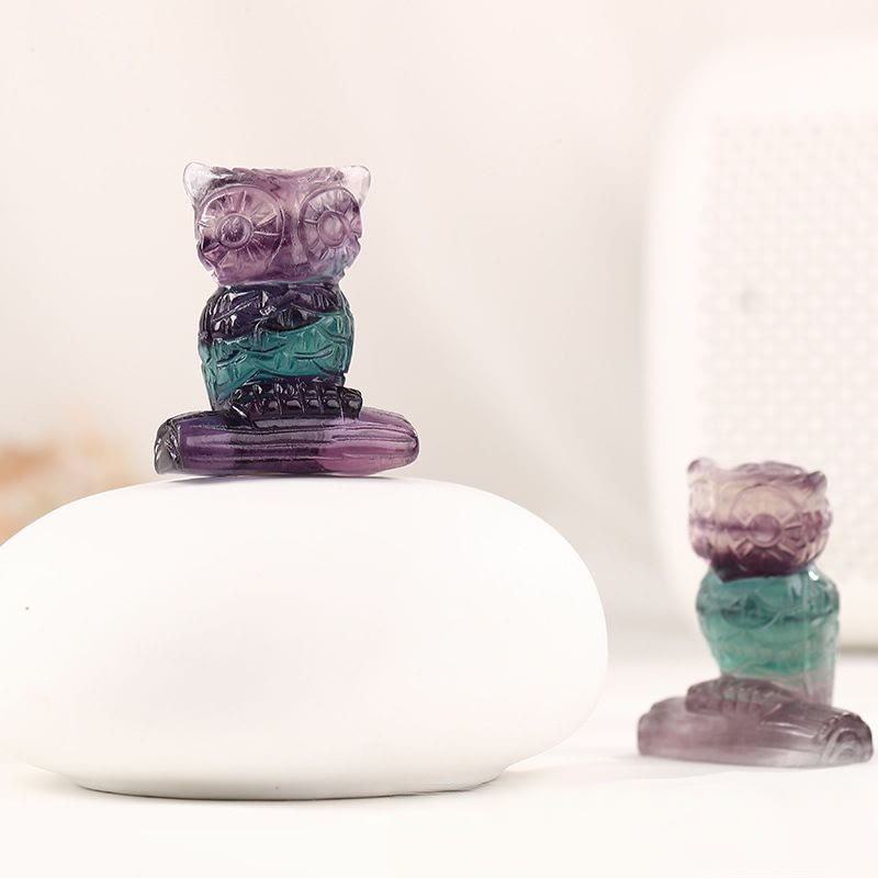 Olivenorma Natural Crystal Carved Crystal Owl Handicraft Ornament