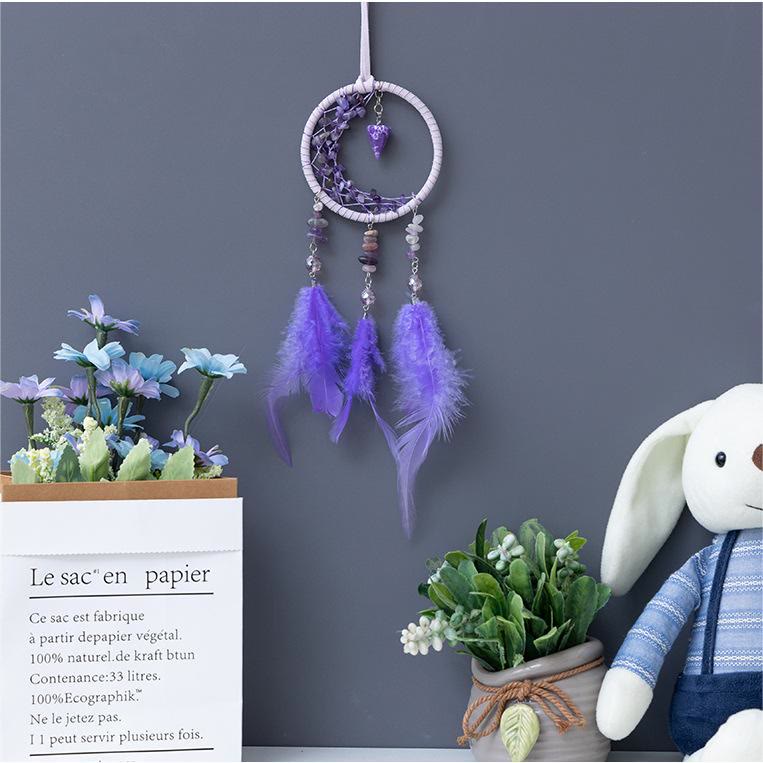 Olivenorma Amethyst Pendant Small Crescent Feather Dream Catcher