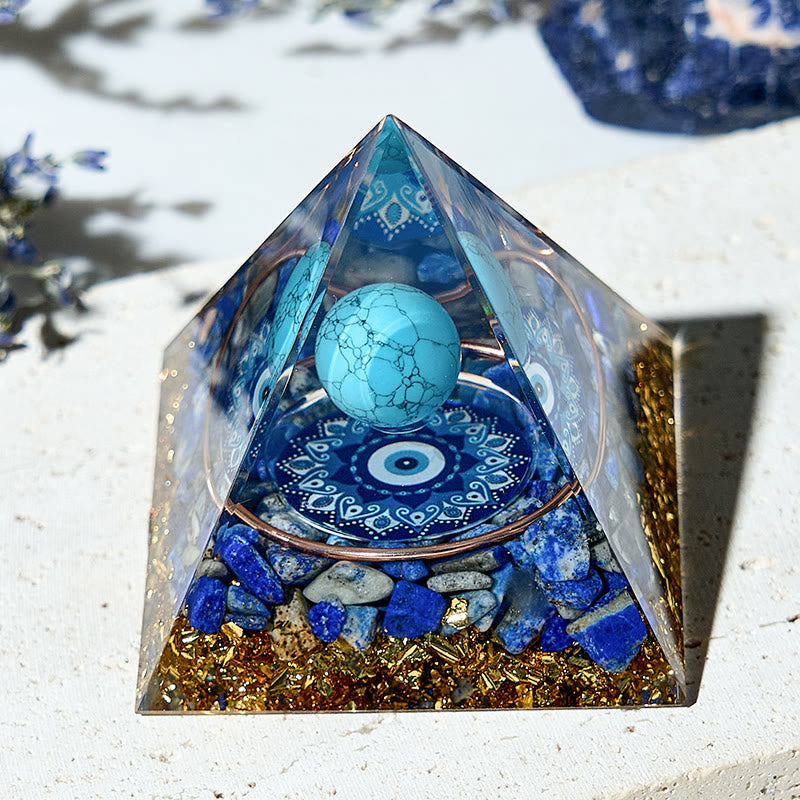 Olivenorma Turquoise Sphere Evil-Eye Protection Orgone Pyramid