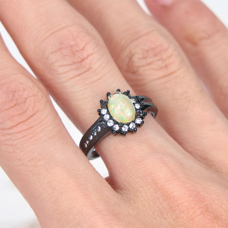 Olivenorma Oval Opal White Zircon Sunflower Ring