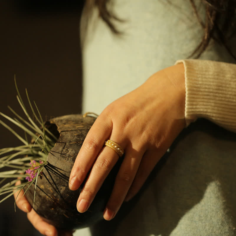 Olivenorma Pearl Silver Delicate Open Adjustable Ring