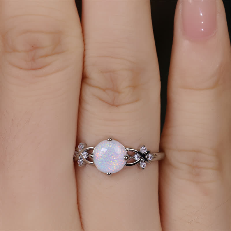 Olivenorma Opal White Zircon Four Leaf Clover Ring