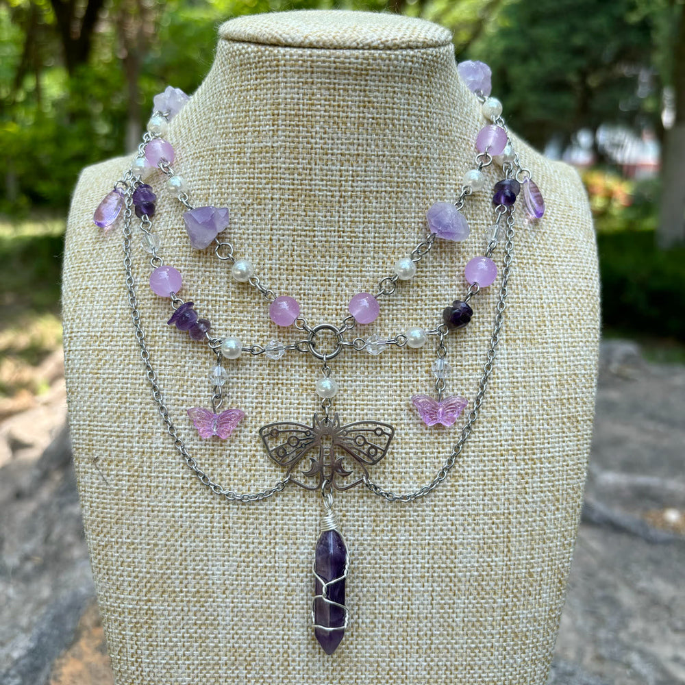 Olivenorma Butterfly Pendant Amethyst Layered Choker Necklace