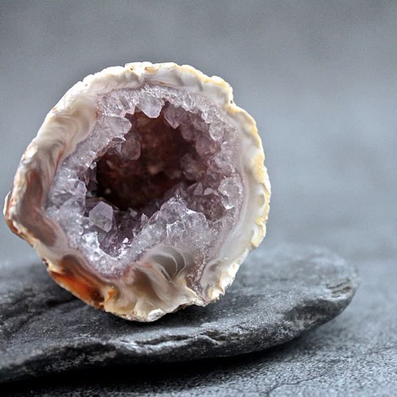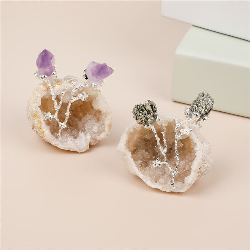 Olivenorma Natural Geode with Amethyst Rosebuds Gemstone Decoration