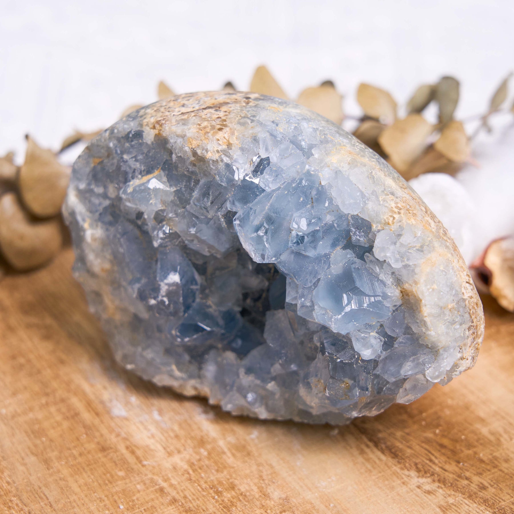 Healing Crystal Celestine geode rock offers a raw Celestine structure that radiates serene, calming energy. Known for its connection to mindfulness and peace, this geode rock helps reduce stress and encourages tranquility. Its soft, blue crystal formations within reflect purity and harmony. With Celestine’s reputation for inspiring positivity and peace, this geode brings balance to both mind and spirit.