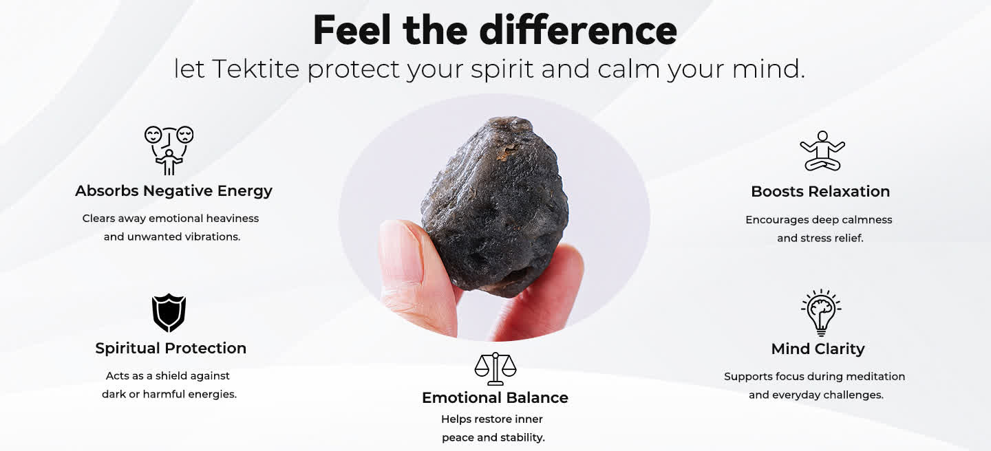 🌙 Balance in Daily Life: Whether you’re meditating, working, or simply trying to unwind after a long day, Tektite enhances emotional balance. It creates a protective shield around your energy, helping you maintain clarity and peace even in stressful environments. It’s the perfect stone for those seeking harmony and inner strength.