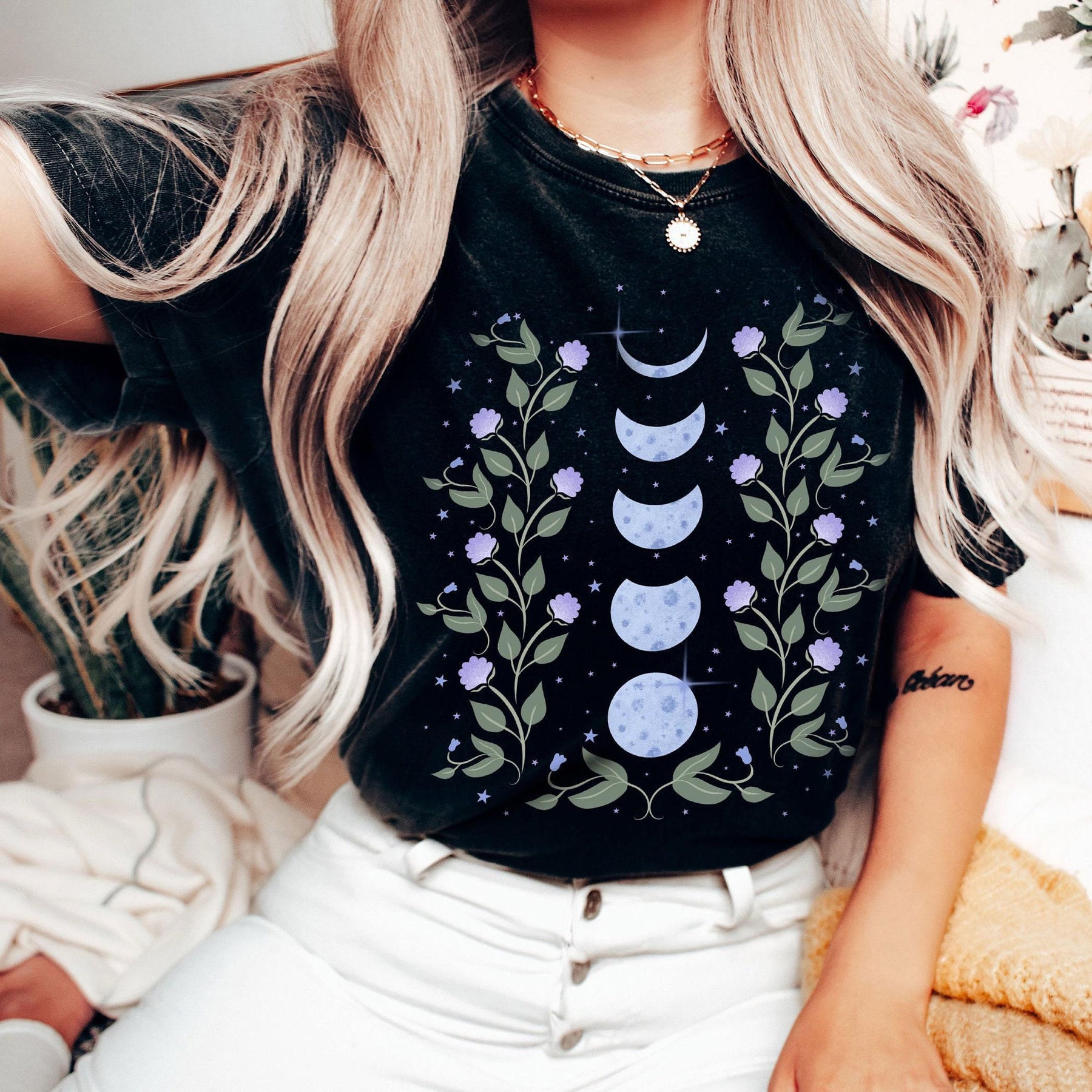 Featuring an elegant illustration of the lunar phases, this tee symbolizes intuition, transformation, and the ever-changing rhythm of life. Whether you're a stargazer, moonchild, or simply drawn to celestial beauty, this design brings a sense of cosmic balance to your everyday look.
