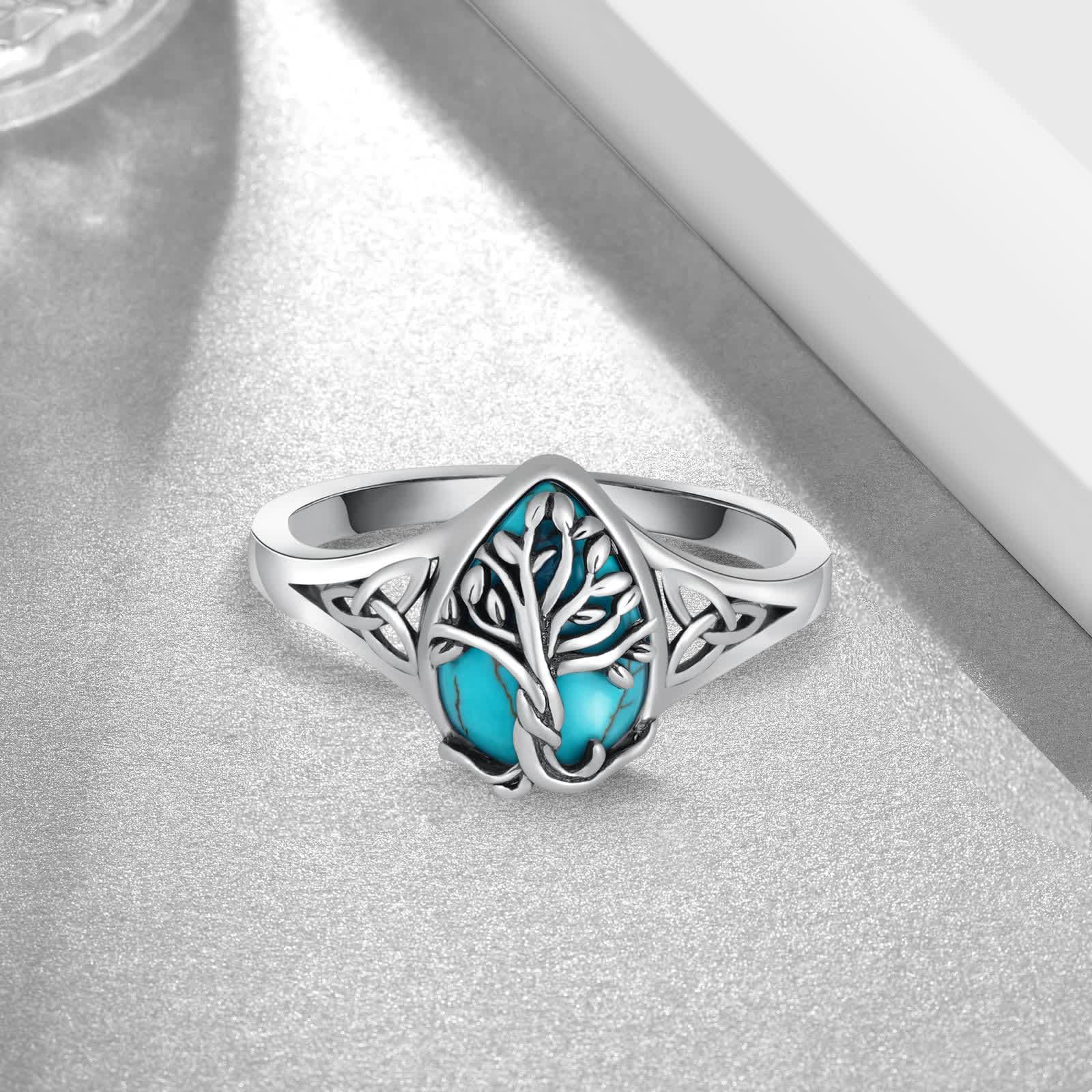FREE Today: Teardrop Turquoise Tree of Life Ring With Exquisite Packaging Box