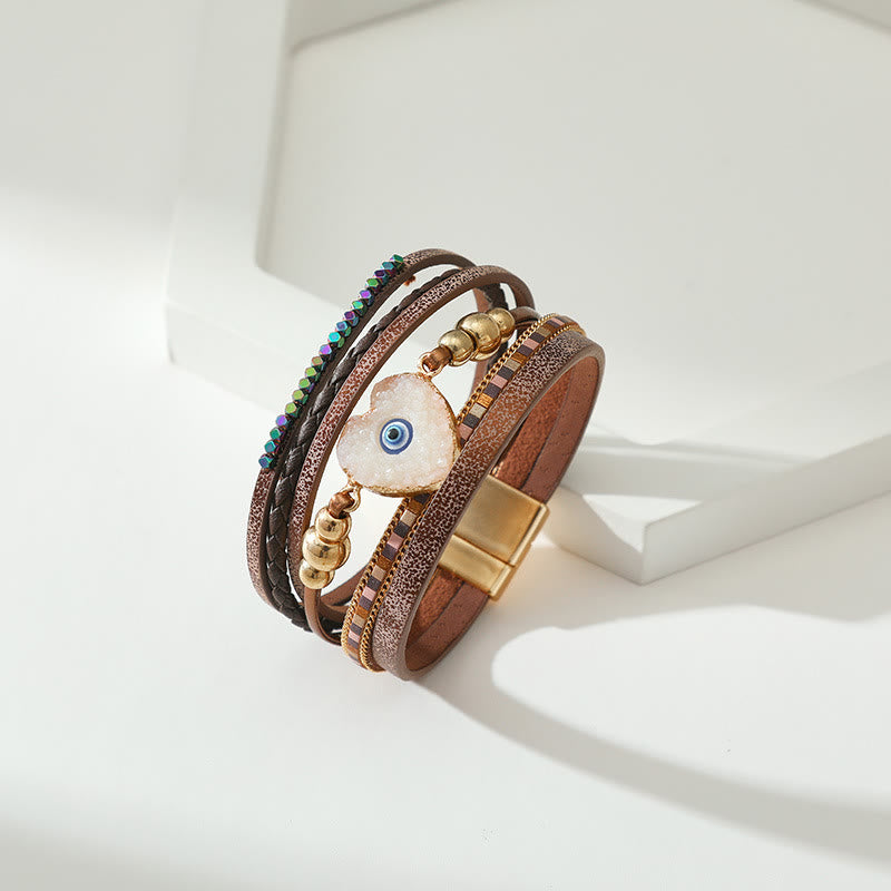 Olivenorma Natural Crystal Beaded Leather Multi-layer Bracelet