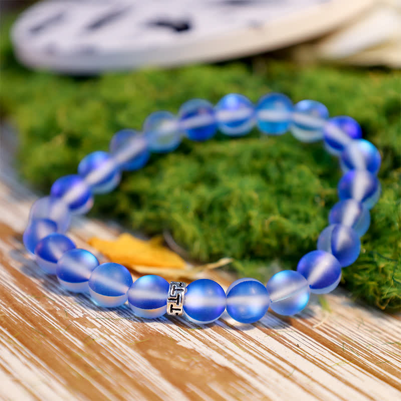 Olivenorma 8mm Mermaid Glass Stainless Steel Beaded Bracelet